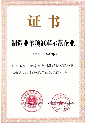 2019年11月27日,獲得工業和信息化部第四批制造業單項冠軍企業(產品)