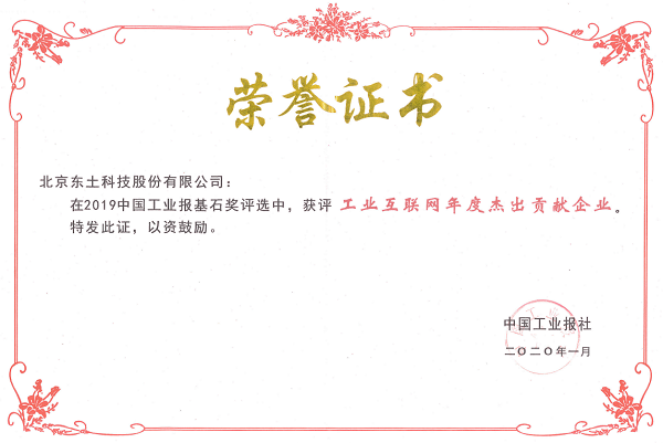 在2019中國工業報“基石獎”評選中,獲評年度大獎 “工業互聯網年度杰出貢獻企業”