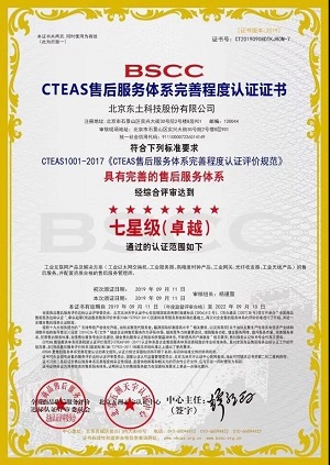 2019年9月11日,在工業互聯網產品及解決方案領域,率先獲得CTEAS售后服務體系完善程度認證七星級卓越證書