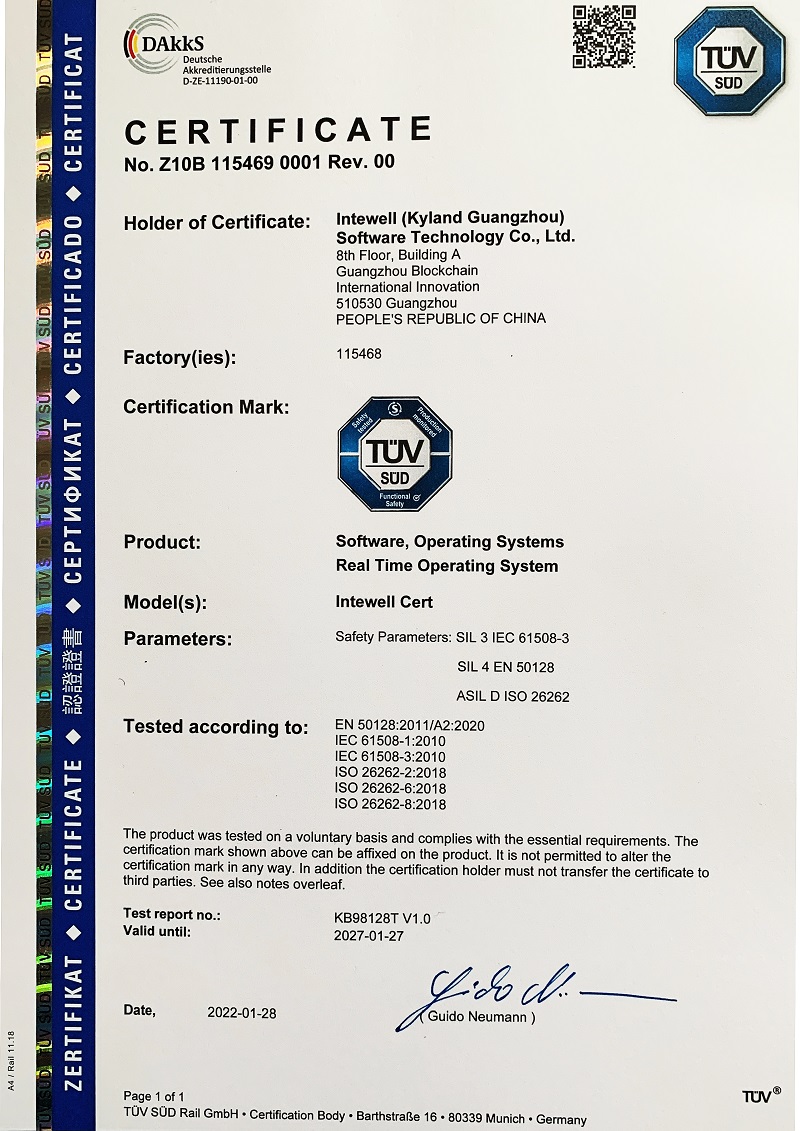 2022年2月, 通過TUV南德三項功能安全認證