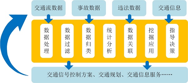 基于城市路網的各類交通感知數據,利用交通控制服務器邊緣計算,分布數據處理能力,進行數據分析、挖掘、智能學習,為交管業務提供科學化、數據化的支撐體系。