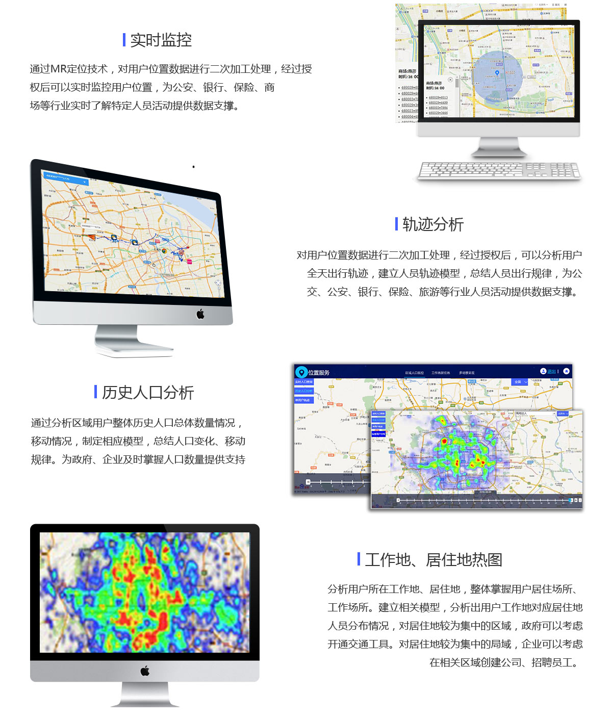 多場景應用模塊,實現區域實時及歷史人口的監控,工作地居住地分析、區域人口流動分析、景區醫院商場社區等各類場景的用戶特征的分析。