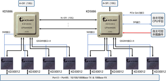 應(yīng)用2:KD5886雙片堆疊方案(96端口)