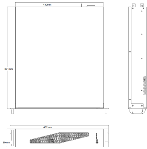 | 機(jī)械結(jié)構(gòu) | 外殼:金屬 重量:12kg 尺寸(WxHxD):430mm×90mm×500mm 安裝方式:2U機(jī)架安裝 |
