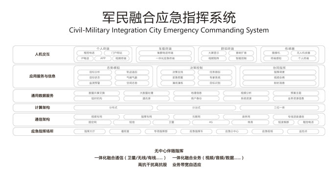 一體化資源融合:綜合空間態勢,衛星雷達聲納、氣象信息、敵我裝備、視頻指揮、輿情、預測的一體化系統,計算機、移動終端多方式呈現,實現全要素資源信息的全面獲取,融合處理、統一分發和按需展示。