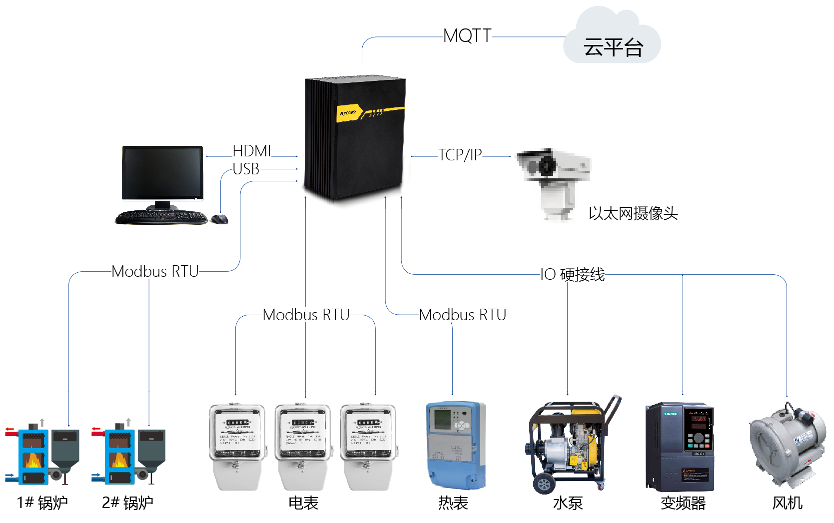 2. 現(xiàn)場往往會包含多種專用設備,這些設備有專用的控制器及HMI,控制層的主控制器受限于接口、協(xié)議往往不能很方便的連接這些專用控制器,導致監(jiān)控層設備難以通過主控制器對整個系統(tǒng)進行監(jiān)控,操作員經常需要操作分布在不同地方的多個HMI,使用非常不便。