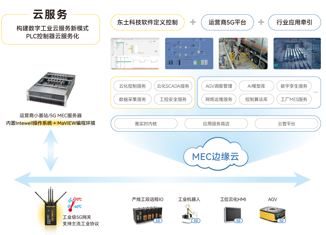 MaVIEW與5G技術(shù)結(jié)合,將控制器軟件化、云化,控制應(yīng)用軟件部署在5G MEC云上,打造5G云化控制系統(tǒng),實(shí)現(xiàn)工廠生產(chǎn)設(shè)備云化控制,真正實(shí)現(xiàn)將5G用于工廠生產(chǎn)控制,構(gòu)建了數(shù)字工業(yè)云服務(wù)新模式。目前該模式已經(jīng)在國(guó)內(nèi)某智能工廠5G燈塔項(xiàng)目正在運(yùn)行。