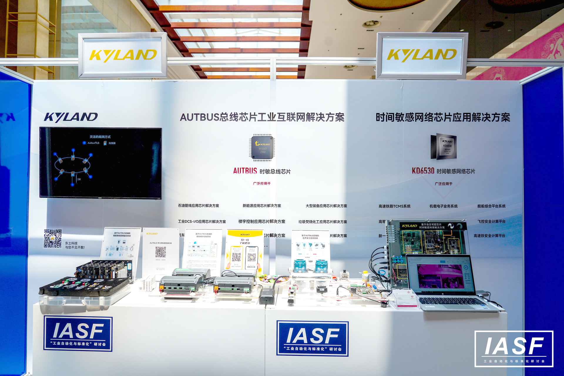 研討會期間,東土科技還展示了AUTBUS解決方案及行業應用,展位觀眾人頭攢動,一睹AUTBUS風采,東土科技工業協議開發部總監黃易和解決方案總監朱瑩分別就“寬帶工業總線AUTBUS標準及應用”“端到端時間敏感網絡解決方案及應用”話題發表了演講。