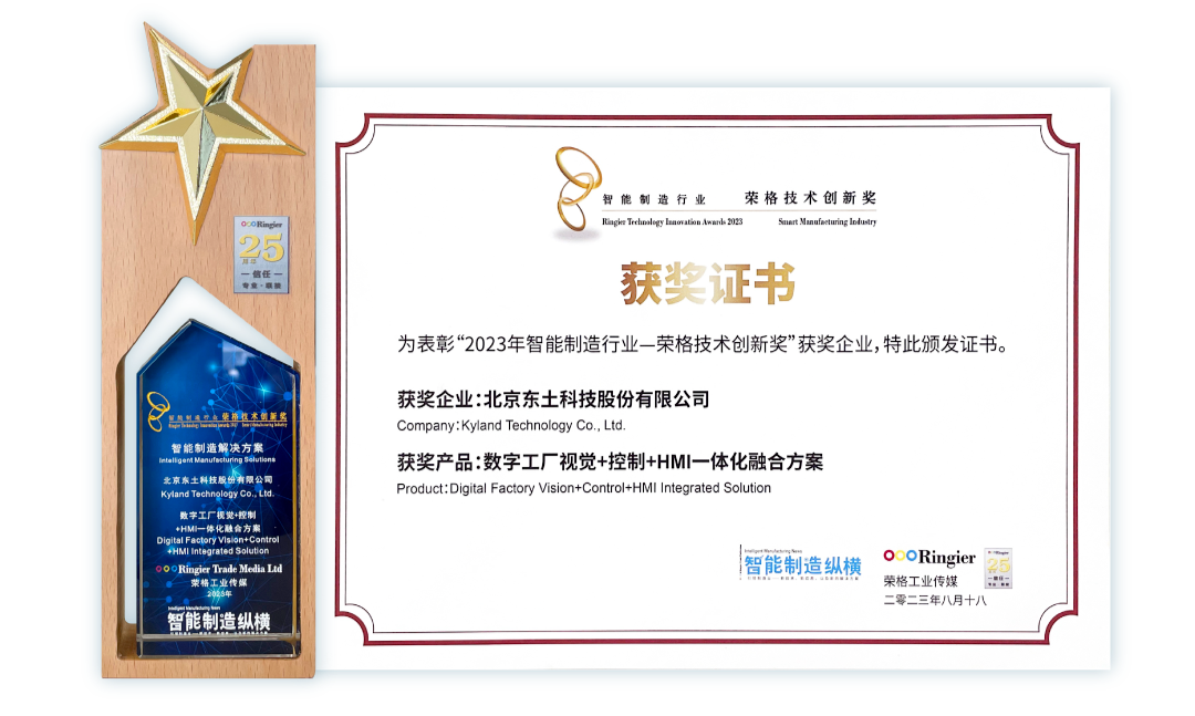 8月,由榮格工業傳媒主辦的“2023 智能制造產業發展會”暨“2023智能制造行業—榮格技術創新獎”頒獎典禮在蘇州成功舉辦。東土科技“數字工廠視覺+控制+HMI一體化融合方案”憑借其卓越的技術性能摘得“榮格技術創新獎——智能制造解決方案獎”。