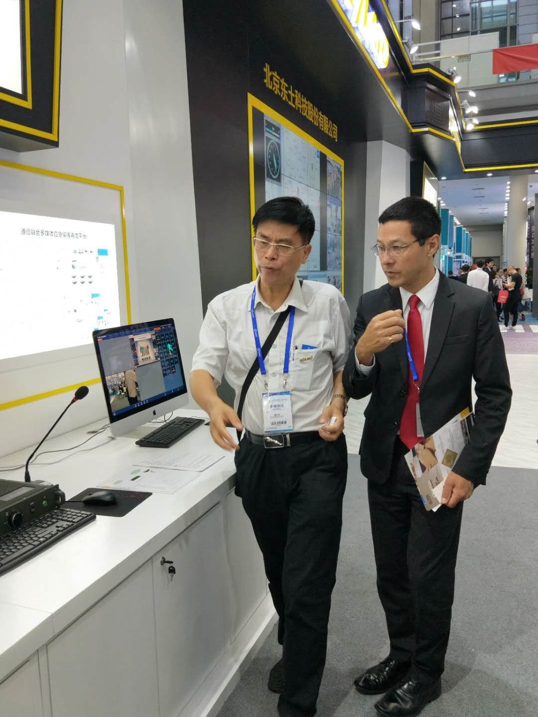 科威特中國(guó)友好協(xié)會(huì)總書記在東土展位進(jìn)行了參觀,并深入的了解了應(yīng)急指揮、人臉識(shí)別等展示內(nèi)容,熱情邀請(qǐng)集團(tuán)相關(guān)人員帶領(lǐng)技術(shù)人員赴科威特,與政府面談。