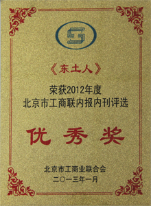 北京市工商業聯合會“2012年度優秀內報內刊表彰會”于2013年1月29日在京舉行。全國工商聯、北京市委宣傳部、統戰部、市工商聯等領導及參與優秀內報內刊評選的200多家單位的代表出席會議。經組委會評選,《東土人》內報榮膺“2012年度北京市工商聯內報內刊評選優秀獎”。