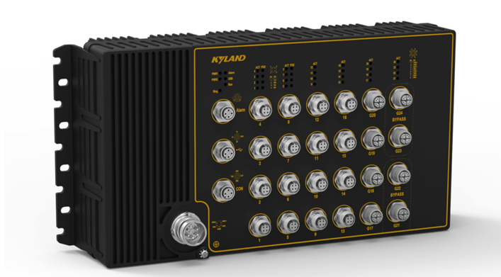 EN50155車載TSN交換機(jī),4×10/100/1000BASE-T(X) M12 port; 20×10/100BASE-T(X) M12 port,千兆電口支持Bypass功能 |