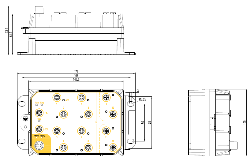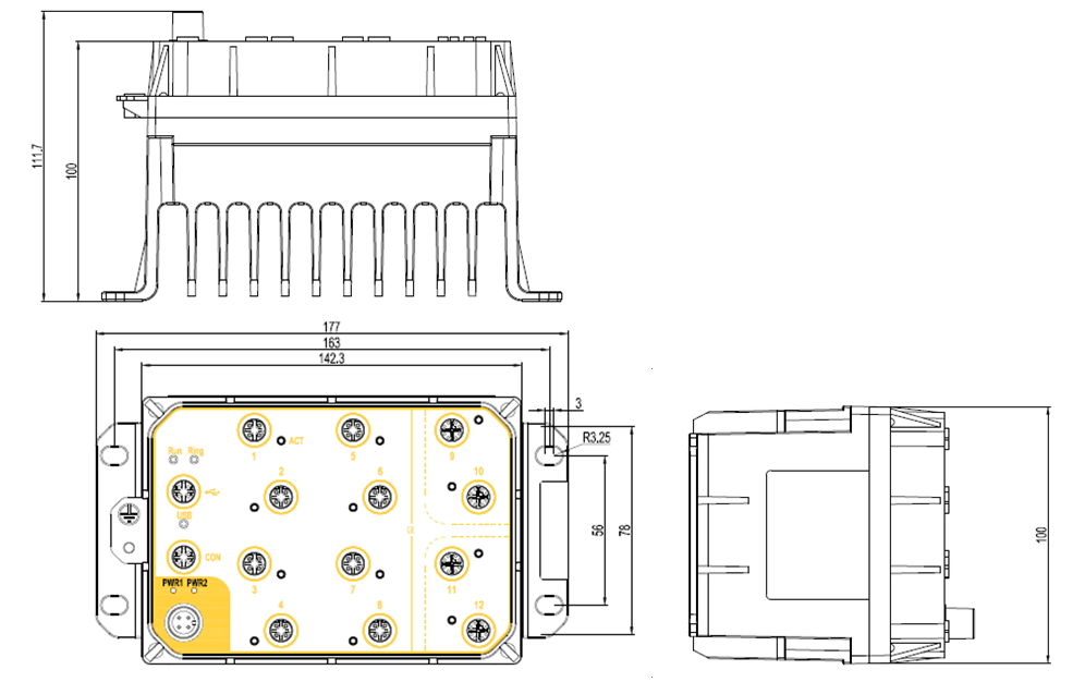 | 機械結(jié)構(gòu) | 外殼: 金屬 散熱方式: 自然冷卻,無風扇 防護等級: IP65 尺寸: 100mm×177mm×111.7mm(H×W×D)帶散熱肋 100mm×177mm×73.4mm(H×W×D)不帶散熱肋 重量: <2Kg 安裝方式: 壁掛式 |