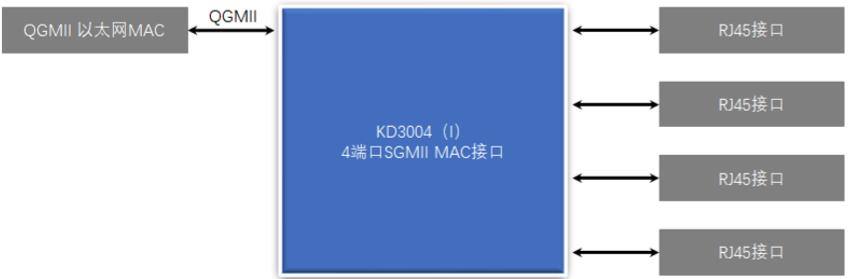 在QSGMII應用模式中,KD3004是QSGMII MAC電口收發器。