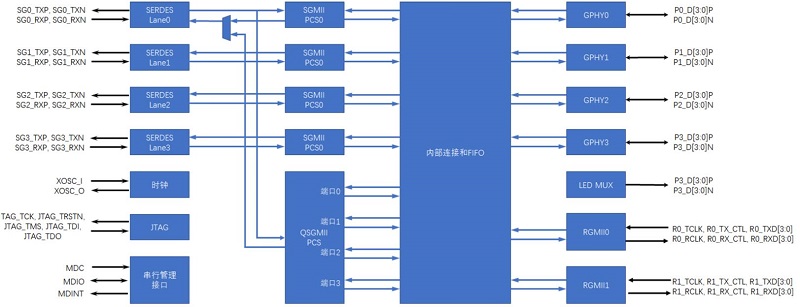 在混合應用模式下,支持多種媒體接口。用戶可以將 每個GPHY端口分配給不同的媒體接口。
