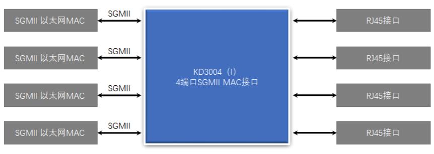 在SGMII應用模式下,KD3004是一個四端口SGMII MAC電口收發器。