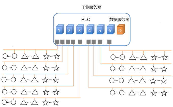 工業服務器主機替代了1 臺數據服務器, 6 臺 PLC 控制器