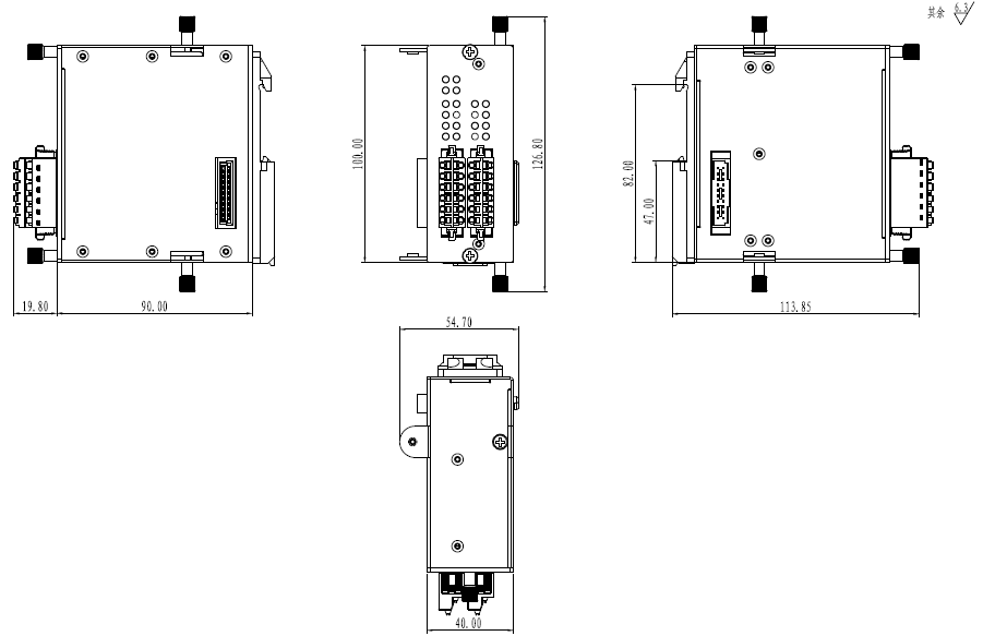 | 機械結構 | 機械結構 鋁質外殼 防護等級 IP30 尺寸 40mm x 100mm x 90mm (W x H x D) 整機重量 500g 安裝方式 導軌安裝 |