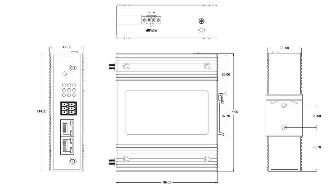 | 環(huán)境條件 | 工作溫度:-40 to 70℃ 存儲(chǔ)溫度:-40 to 70℃ 相對濕度:5 ~ 95%,無凝露 散熱方式:自然冷卻, 無風(fēng)扇 防護(hù)等級(jí):IP40 安裝方式:DIN 卡軌式 |