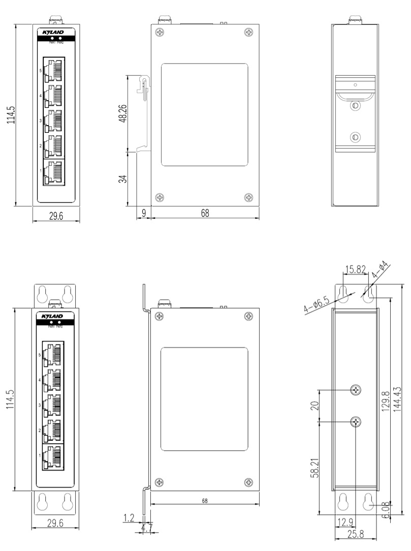 | 機械結構 | 外殼 金屬材質 散熱方式 自然冷卻,無風扇 防護等級 IP30 尺寸 29.6mm×114.5mm×68mm (W×H×D) 重量 0.2Kg 安裝方式 DIN卡軌式或壁掛式 |