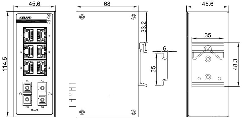 | 機(jī)械結(jié)構(gòu) | 外殼 金屬材質(zhì) 散熱方式 自然冷卻,無(wú)風(fēng)扇 防護(hù)等級(jí) IP30 尺寸 45.6mm×114.5mm×68mm(W×H×D) 重量 0.3Kg 安裝方式 DIN卡軌式或壁掛式 |