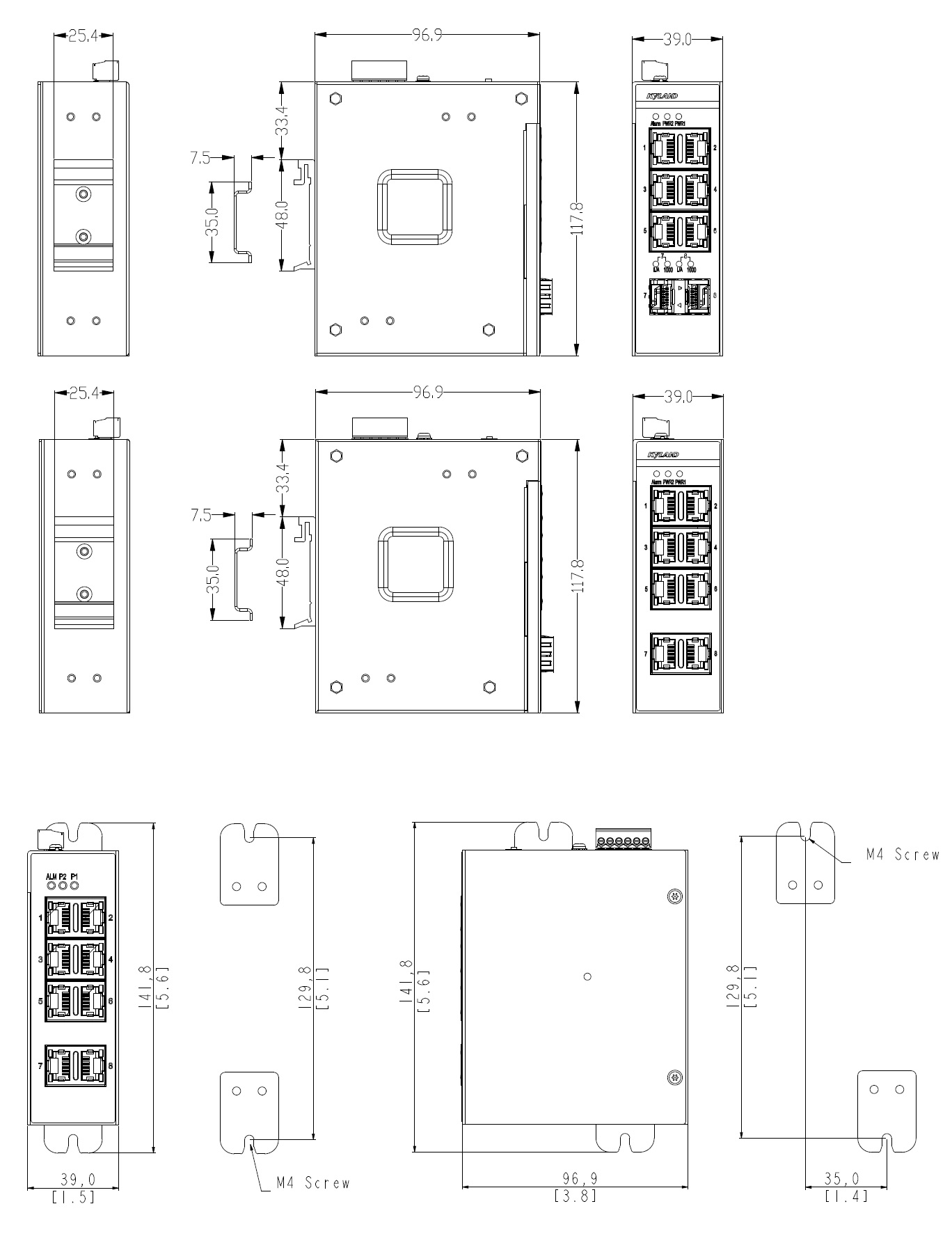 | 機械結構 | 外殼 金屬材質 散熱方式 自然冷卻,無風扇 防護等級 IP30 尺寸 39mmx117.8mmx96.9mm(W×H×D) 重量 <0.5Kg 安裝方式 DIN卡軌式或壁掛式 |
