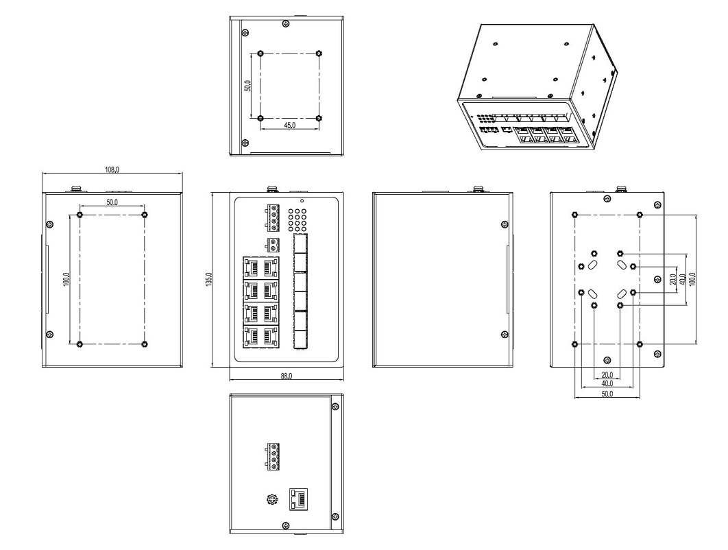 | 機(jī)械結(jié)構(gòu) | 外殼 金屬材質(zhì) 散熱方式 自然冷卻,無風(fēng)扇 防護(hù)等級(jí) IP40 尺寸 88mm×135mm×108mm (W×H×D) 重量 1.20Kg 安裝方式 DIN卡軌式 |