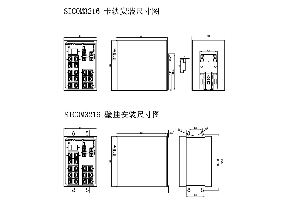 | 機械結構 | 外殼 金屬材質 散熱方式 自然冷卻,無風扇 防護等級 IP40 尺寸 88mm×135mm×137mm(W×H×D) 重量 1.25Kg 安裝方式 DIN卡軌式或壁掛式 |