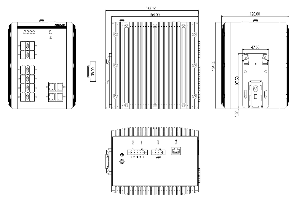 | 管理與維護 | 支持Console, Telnet, WEB管理方式 支持SNMP v1/v2c/v3, 支持DES和AES加密,可通過Kyvision集中管理 支持通過FTP/TFTP/HTTP/HTTPs進行軟件升級和配置的上傳下載 支持IP/MAC沖突告警, 電源告警, CPU/內存利用率告警,端口link告警,端口流量告警,端口丟包率及CRC告警,環告警,接收及發送光功率告警 支持RMON(統計組,歷史組,告警組,事件組) 支持Syslog,可本地保存或上傳至日志服務器 支持端口鏡像和遠程鏡像端口 支持LLDP和LLDP MIB(802.1ab) 支持內部硬件自檢 支持DDM光功率檢測功能 支持MTU配置 支持Ping, Trace route |