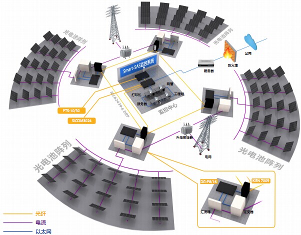 光伏發電監控系統對光伏電站里電池陣列、 匯流箱、逆變器、交直流配電柜、太陽能跟蹤控制系統等設備進行實時監測控制,從而掌握電站運行情況,確保太陽能光伏發電系統完全可靠和穩定運行。